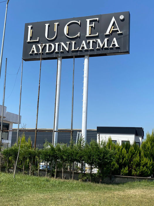 The corporate identity emphasis was strengthened with illuminated signs placed at different points on the exterior of the Lucea Lighting company's building in order to increase its appeal. The eye-catching illuminated signs integrated into the building facade highlighted the brand visibility, especially at night, with their modern design and high brightness. In addition, a specially designed sign was placed on a high pole to ensure it was noticeable from a distance. The project was successfully completed by observing the principles of aesthetics, durability and institutionality.